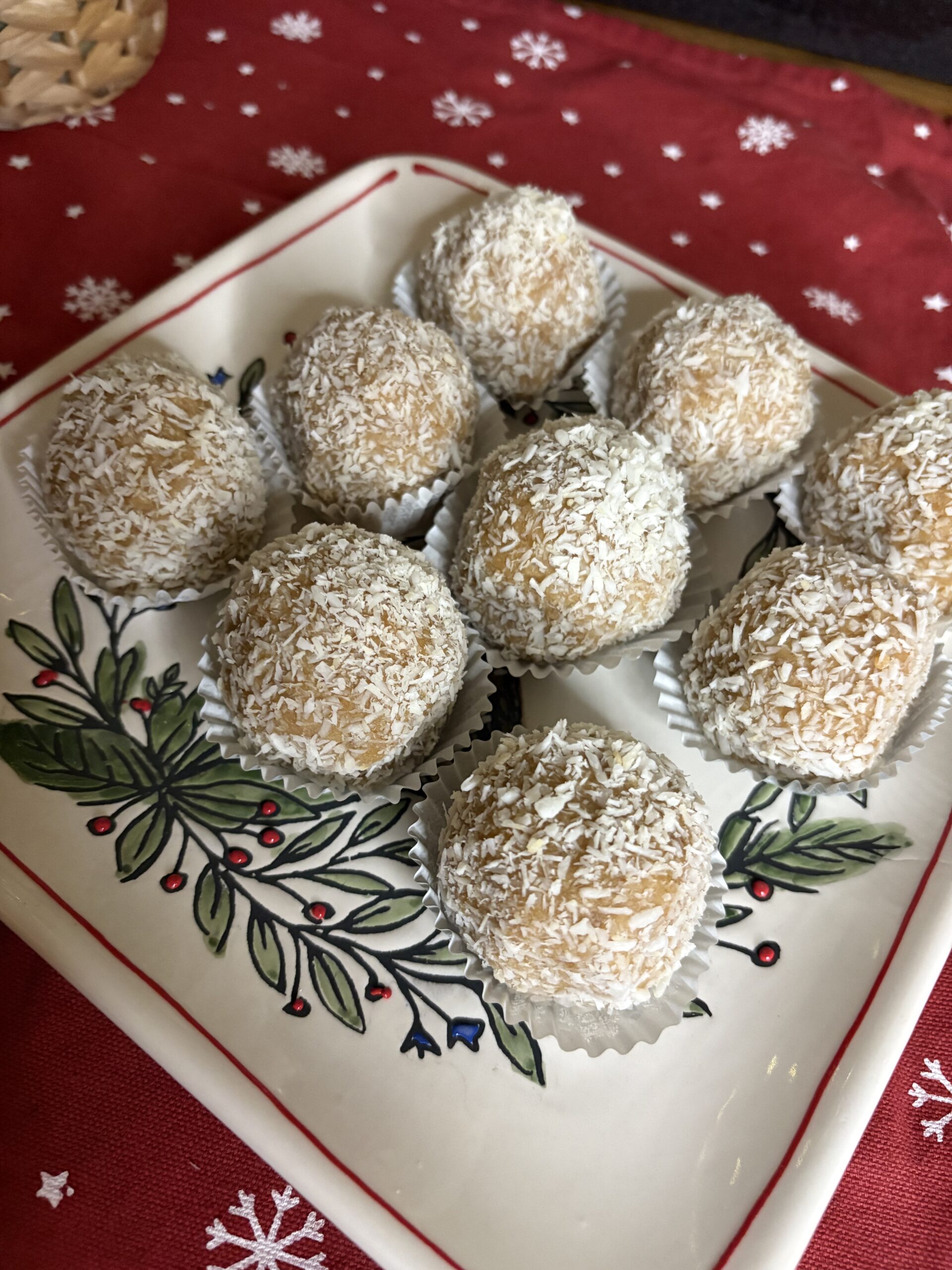 - Prepare a bowl or tray with coconut for rolling, and keep a bowl of warm water handy to dampen r hands (this helps stop the mix from sticking).
