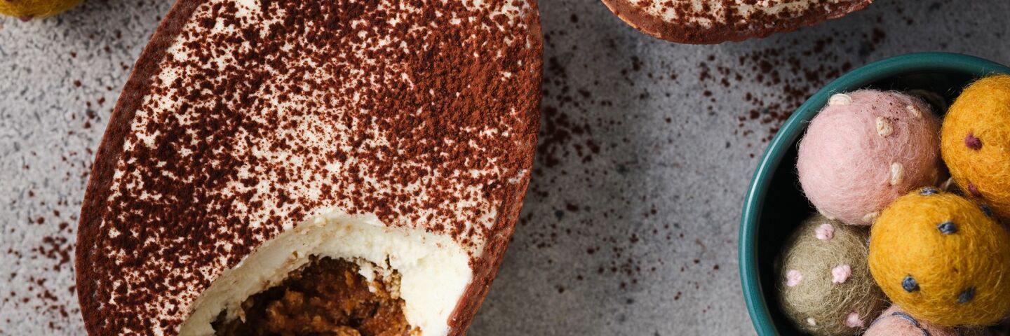 - Dust the top of each Easter egg with a generous coating of cocoa powder using a sieve, then refrigerate for three hours or overnight before serving.